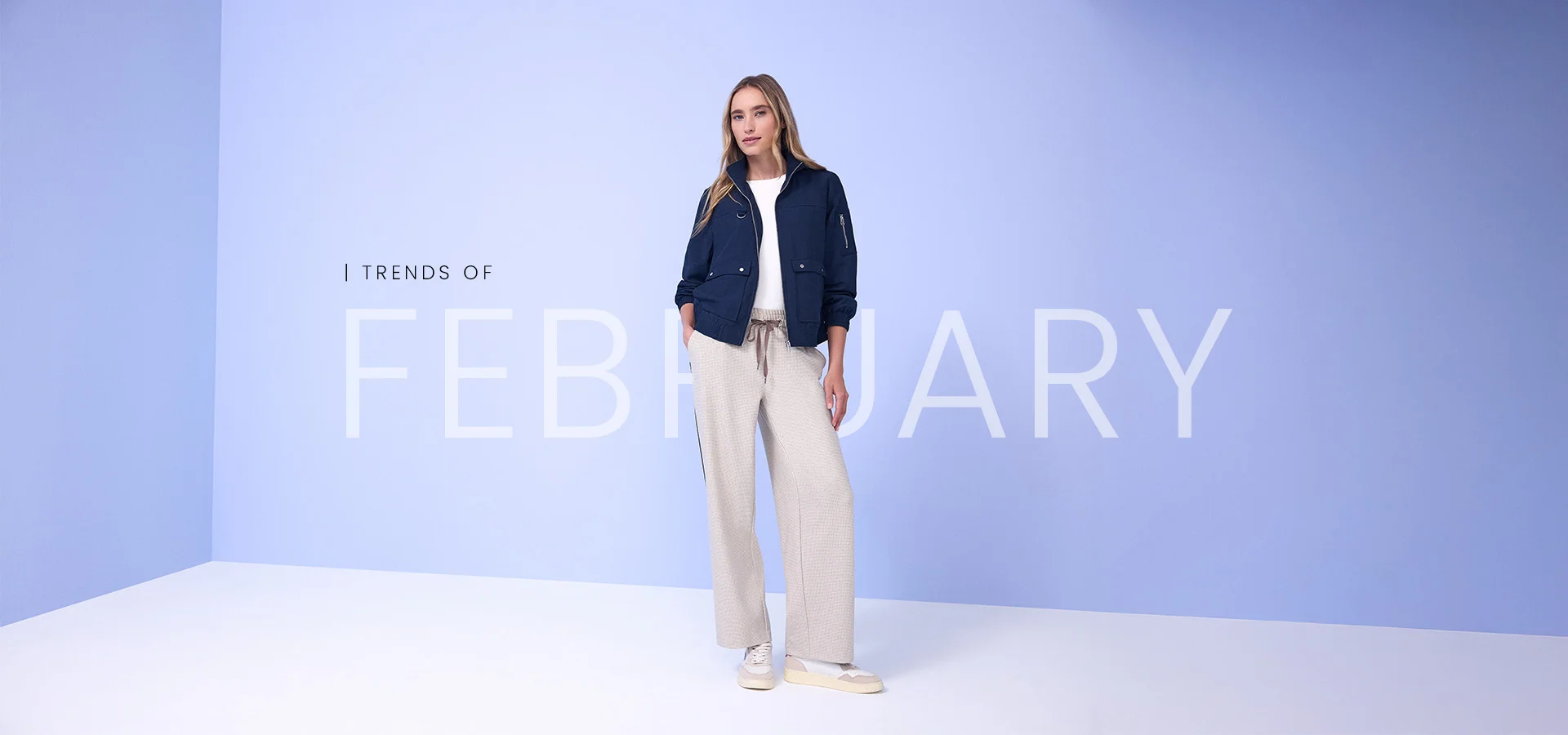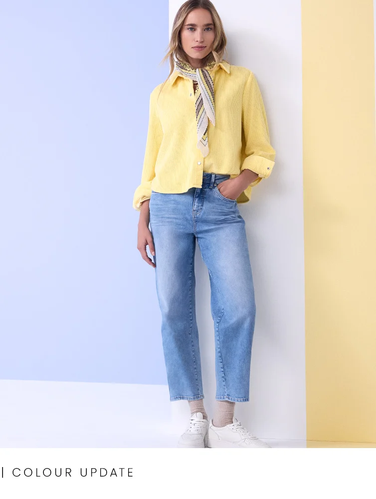 In der Februar-Kollektion treffen ruhige, gedeckte Töne auf frische Akzente in Gelb und Blau und bringen Leichtigkeit in den Look.