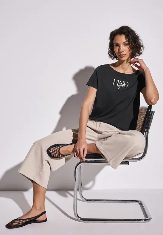 Dieses Shirt von Street One für Damen punktet mit seinem lässigen Wording Artwork. Der Print überzeugt mit schimmernden Details, während ein Rundhalsausschnitt den Look des Kurzarmshirts abrundet. Der weiche Baumwoll-Modalmix sorgt für ein besonders angenehmes Tragegefühl. Perfekt für entspannte Casual-Looks.